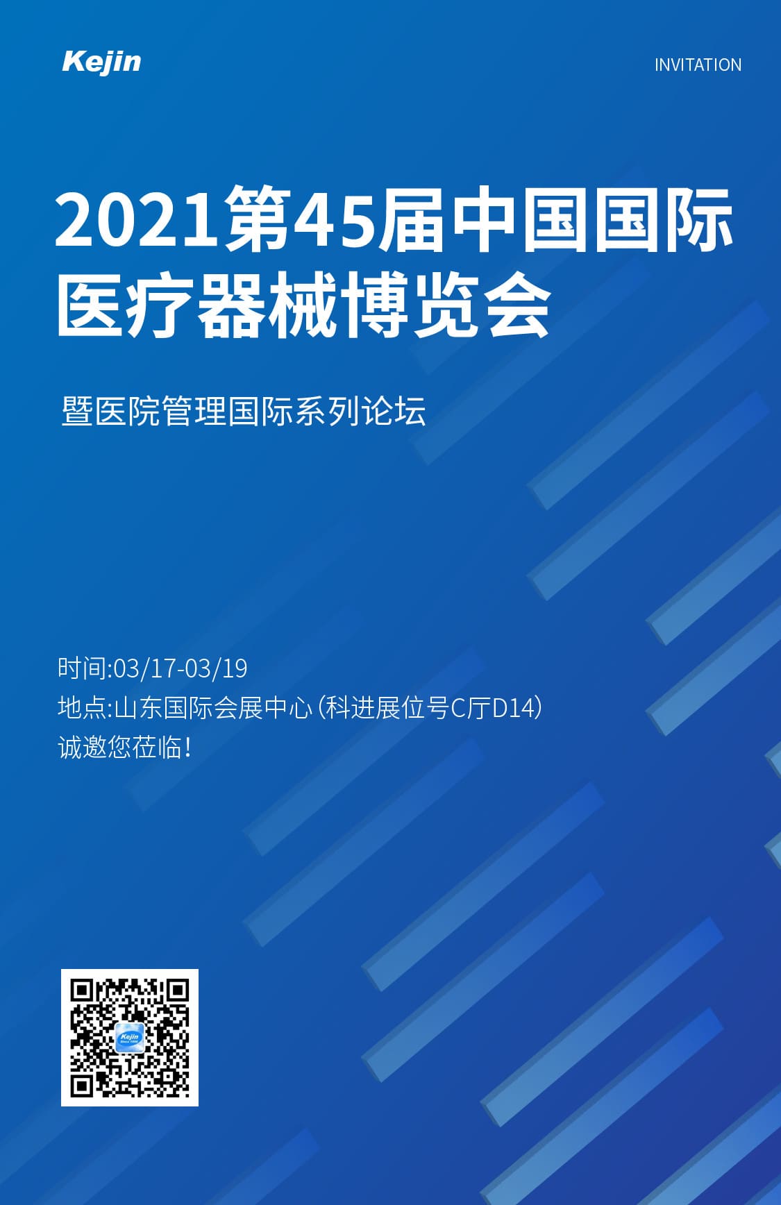 我們誠摯邀請您參加于2021年3月17-19日山東國際會展中心舉辦的2021第45屆中國國際醫(yī)療器械(山東)博覽會。南京科進(jìn)展位號:C廳D14